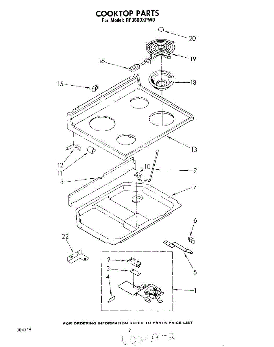 Parts for Whirlpool RF3600XPW0: 02 - Cooktop Parts
