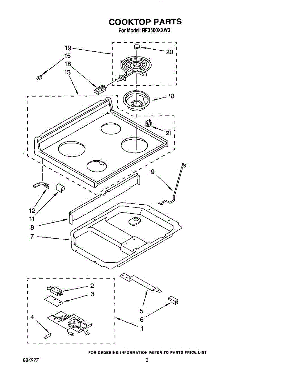 Shallow metal drip pan installs below burner elements to catch grease and spills. Replace when discolored, rusted, warped, or damaged for a clean cooktop.