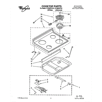 Parts for Whirlpool RF360BXYW1: 01 - Cooktop, Lit / Optional Parts