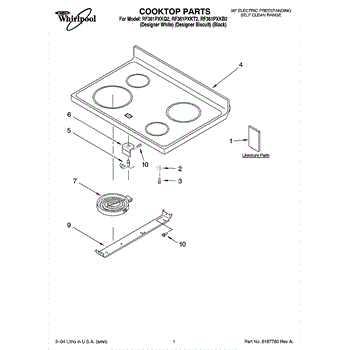 Parts for Whirlpool RF361PXKT2: 01 - Cooktop Parts