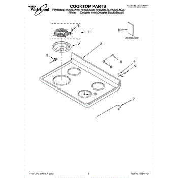 Parts for Whirlpool RF362BXKT0: 01 - Cooktop, Literature Parts