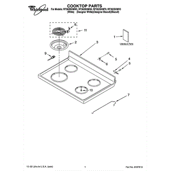 Parts for Whirlpool RF362BXMW0: 01 - Cooktop Parts
