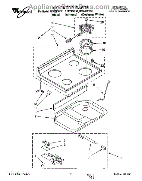 Parts for Whirlpool RF365PXYQ1: 01 - Cooktop, Literature Parts