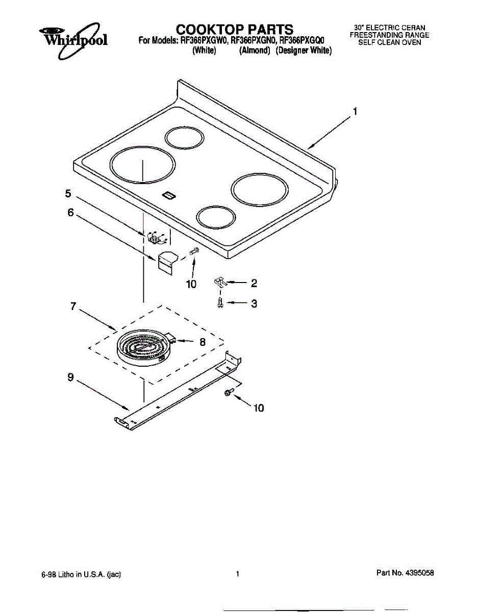 White frame, black glass, 30 inches wide. By Whirlpool.