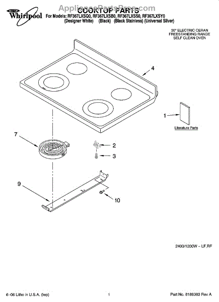 Parts for Whirlpool RF367LXSB0: 01 - Cooktop Parts