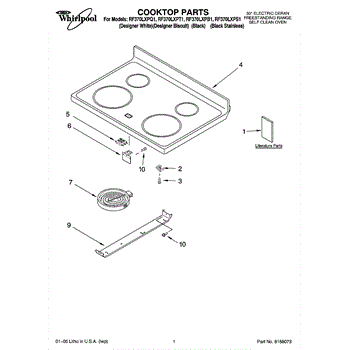 Parts for Whirlpool RF370LXPB1: 01 - Cooktop Parts