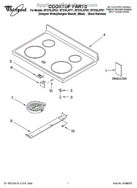 Parts for Whirlpool RF370LXPT1: 01 - Cooktop Parts
