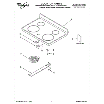 Parts for Whirlpool RF370LXPT3: 01 - Cooktop Parts