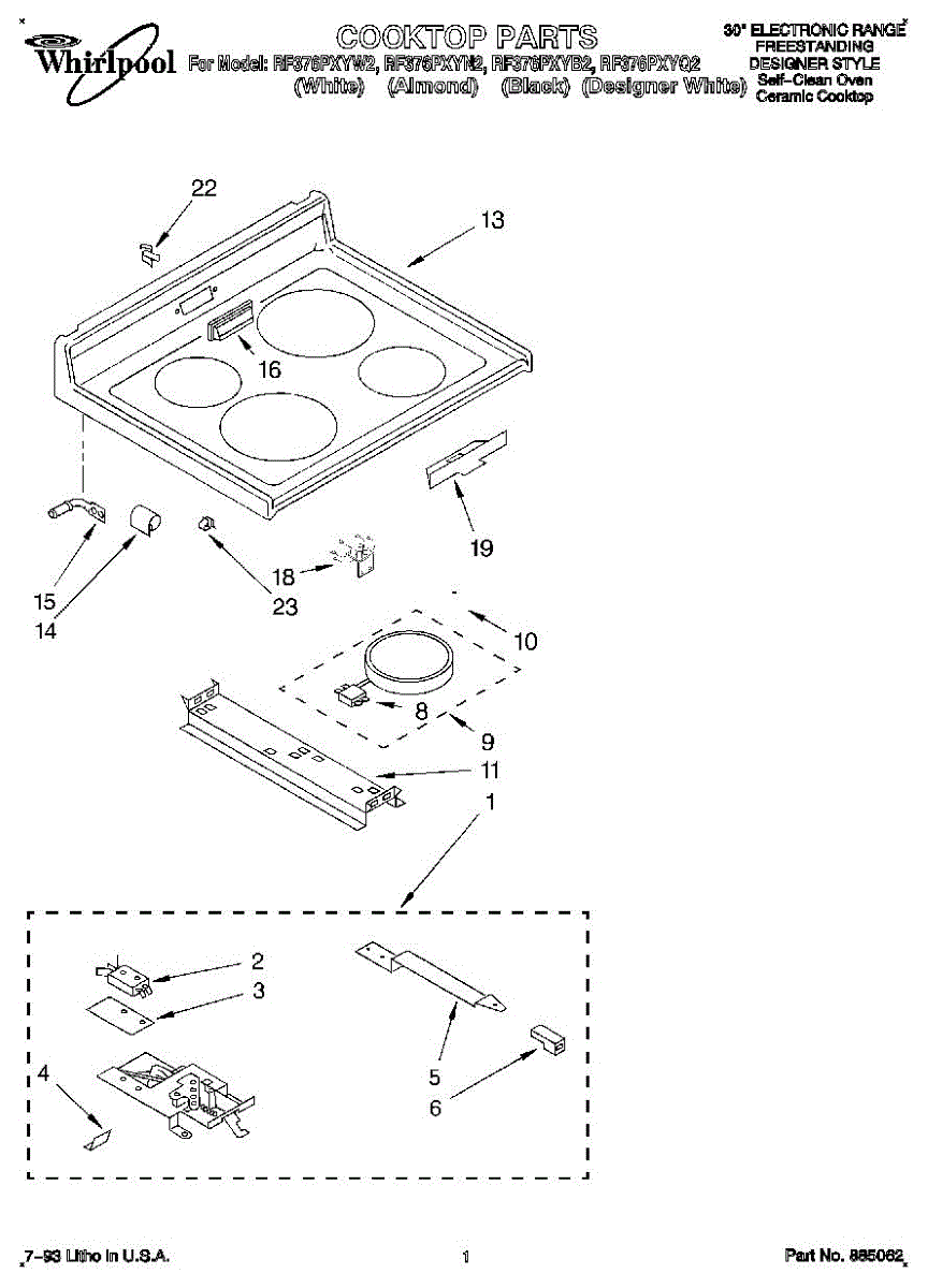 Element locator spring attaches cooktop burner brackets to the surface. Replaces broken, missing, or worn springs that secure element mounting hardware.