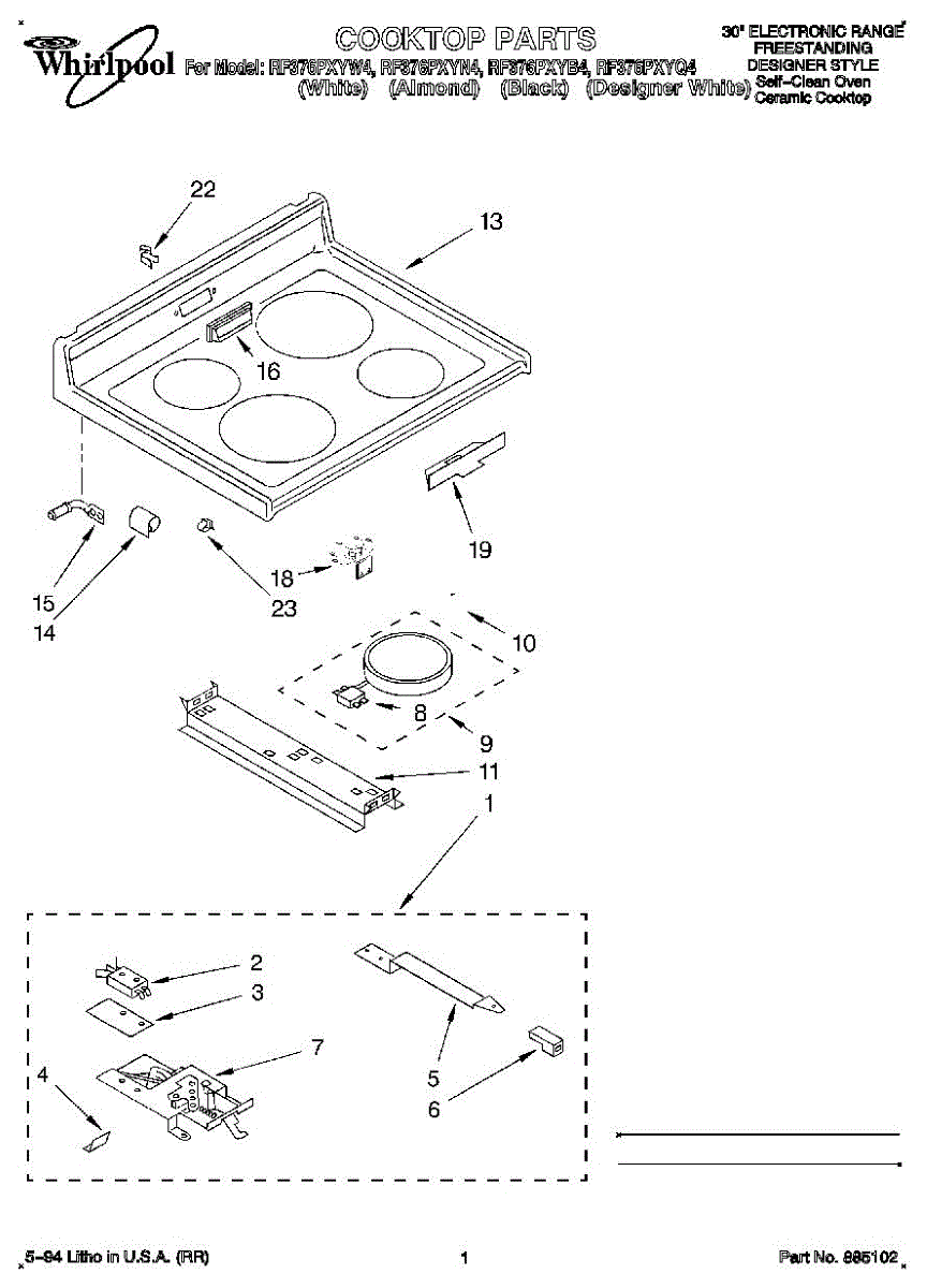 Element locator spring attaches cooktop burner brackets to the surface. Replaces broken, missing, or worn springs that secure element mounting hardware.