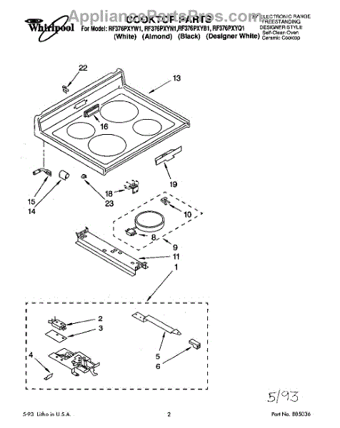 Parts for Whirlpool RF376PXYW1: 01 - Cooktop Parts