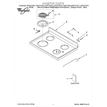 Parts for Whirlpool RF377PXGZ1: 01 - Cooktop, Literature Parts