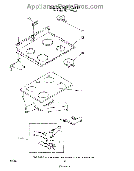 Parts for Whirlpool RF377PXWW1: 02 - Cooktop Parts