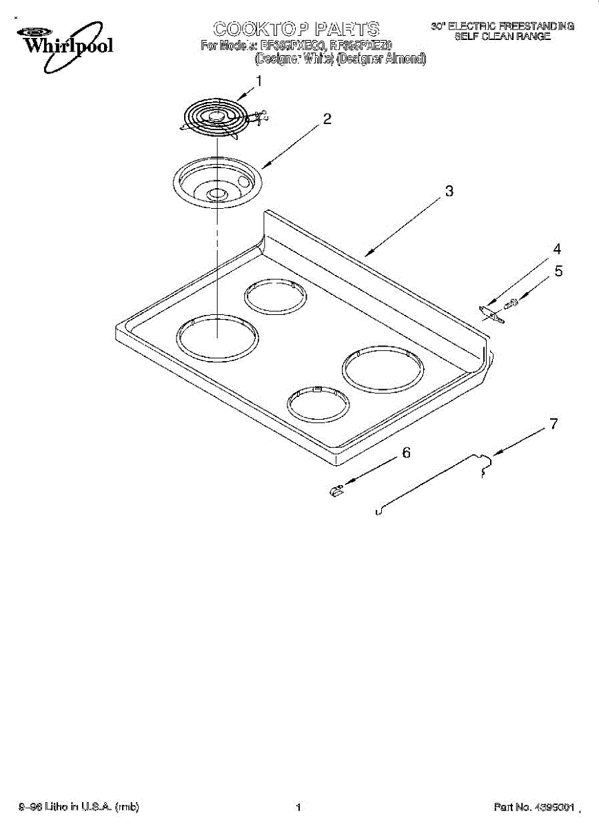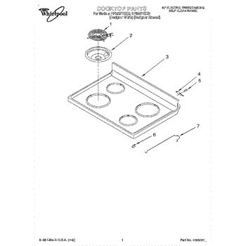 White metal main top panel for electric ranges. Replaces cracked, chipped, or discolored cooktop surface. Includes burner openings and trim area.