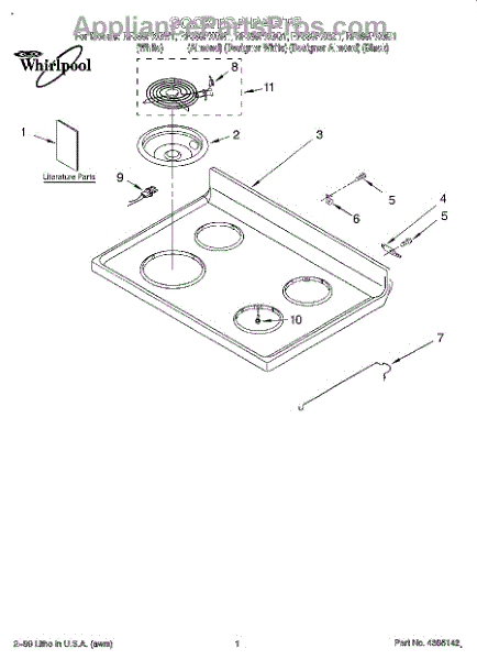 Parts for Whirlpool RF385PXGQ1: 01 - Cooktop, Literature Parts