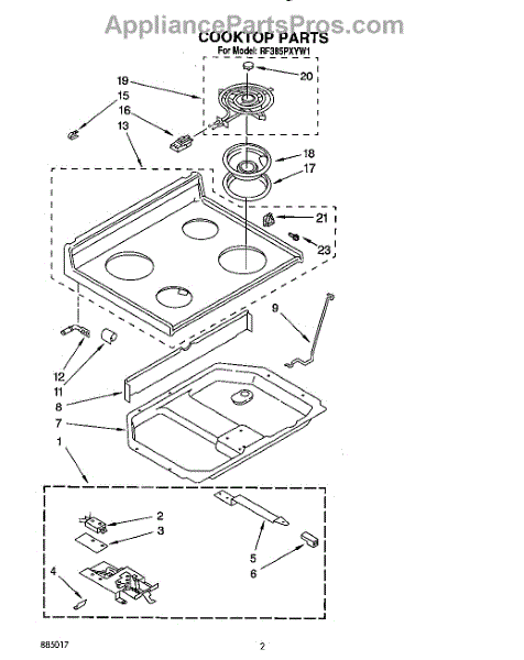 Parts for Whirlpool RF385PXYN1: 02 - Cooktop Parts