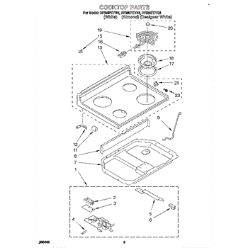 Parts for Whirlpool RF385PXYW3: 03 - Cooktop Parts