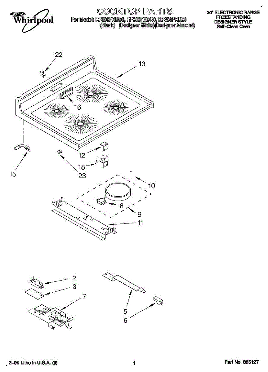 Element locator spring attaches cooktop burner brackets to the surface. Replaces broken, missing, or worn springs that secure element mounting hardware.