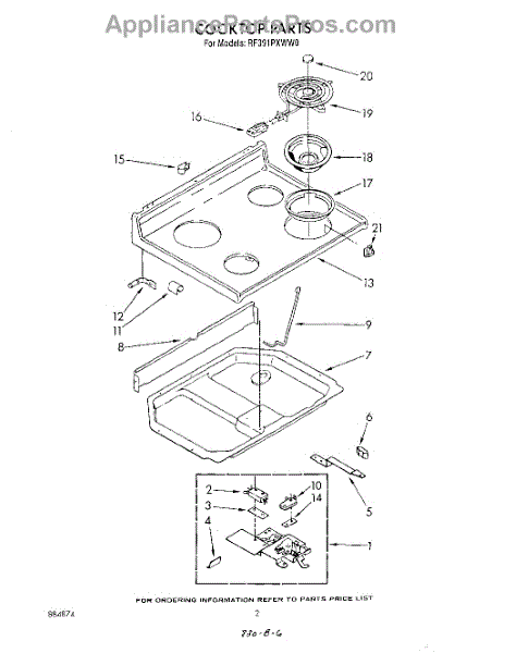 Parts for Whirlpool RF391PXWW0: 02 - Cooktop Parts