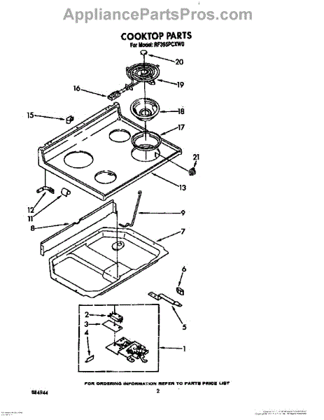 Parts for Whirlpool RF395PCXW0: 02 - Cooktop Parts