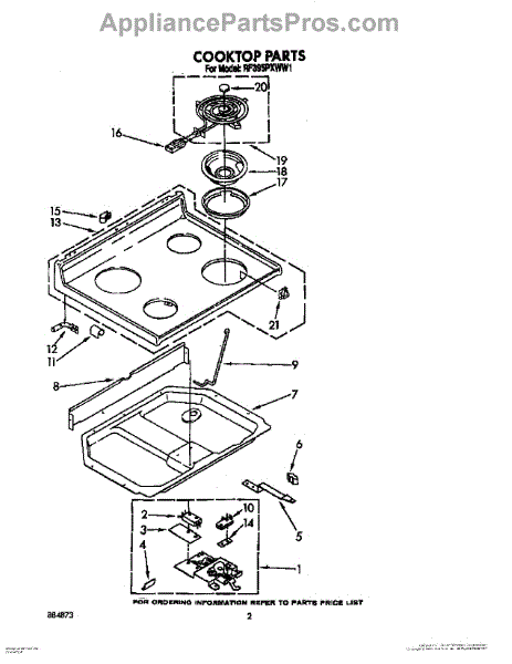 Parts for Whirlpool RF395PXWW1: 02 - Cooktop Parts