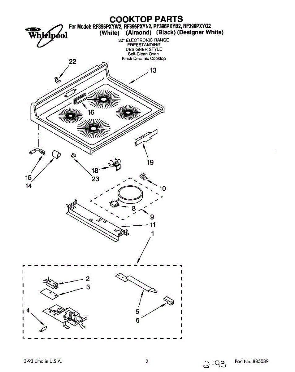 Element locator spring attaches cooktop burner brackets to the surface. Replaces broken, missing, or worn springs that secure element mounting hardware.