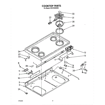 Parts for Whirlpool RF4700XWW0: 03 - Cooktop Parts