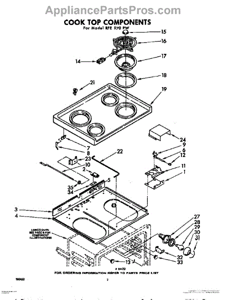 Parts for Whirlpool RFE970PW: 02 - Cooktop Parts