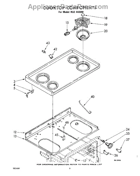 Parts for Whirlpool RGE4400W: 06 - Cooktop Parts