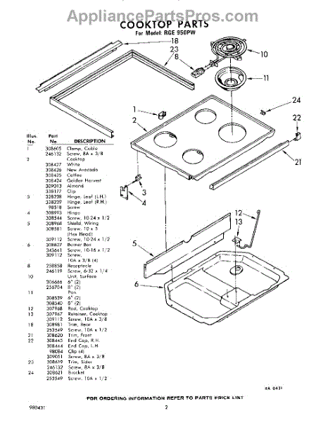Parts for Whirlpool RGE950PW: 02 - Cooktop Parts
