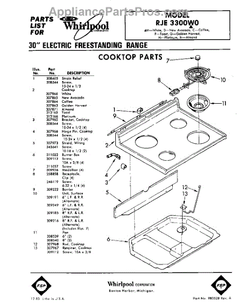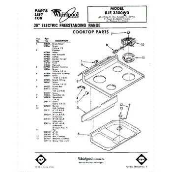 Parts for Whirlpool RJE3300W0: 01 - Cooktop Parts