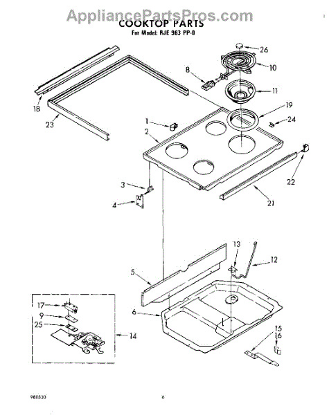 Parts for Whirlpool RJE963PP0: 06 - Cooktop Parts
