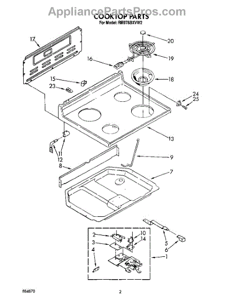 The Stove Top Drip Pan is an OEM replacement part for Whirlpool ranges. It is the shallow metal pan located below the stove burner elements that collect grease and food particles. The drip pan helps direct spills and drips away from the burner area to the bottom drawer for easy cleanup. Symptoms of a bad drip pan include: