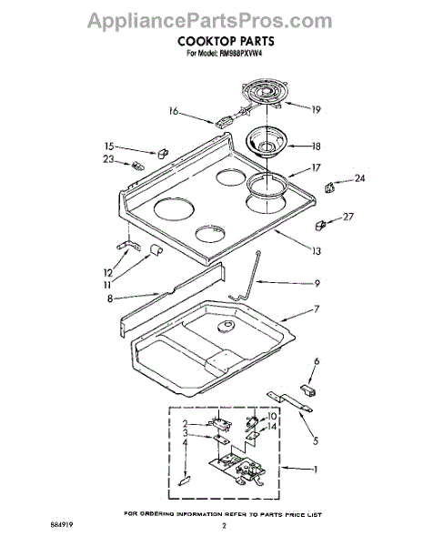 Parts for Whirlpool RM988PXVW4: 02 - Cooktop Parts