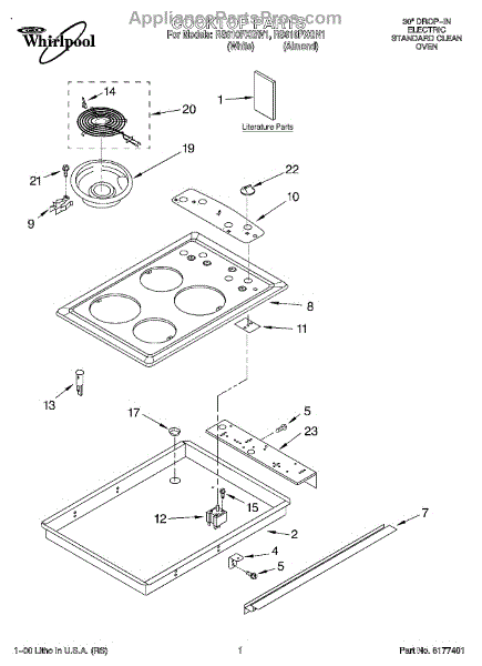 Parts for Whirlpool RS610PXGW1: 01 - Cooktop, Literature Parts