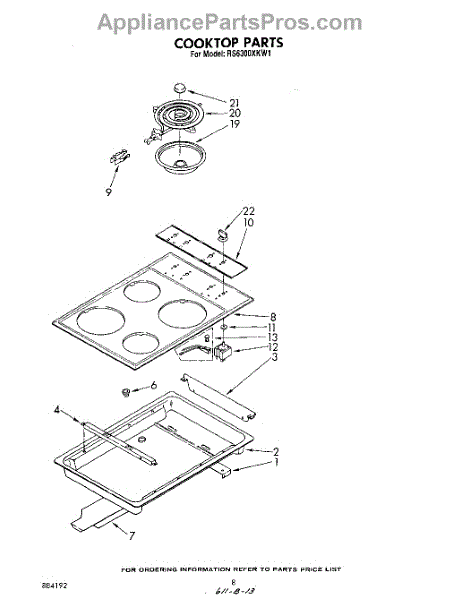 Parts for Whirlpool RS6300XKW1: 05 - Cooktop Parts