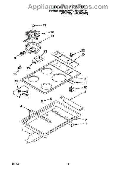 Parts for Whirlpool RS6305XYN4: 04 - Cooktop Parts