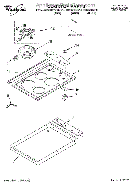 Parts for Whirlpool RS675PXGT14: 01 - Cooktop Parts