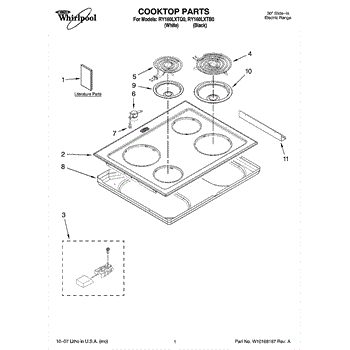 Parts for Whirlpool RY160LXTQ0: 01 - Cooktop Parts
