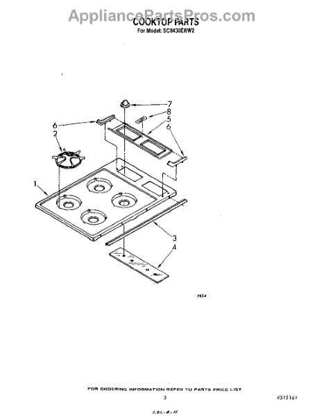 Parts for Whirlpool SC8430ERW2: 03 - Cooktop Parts