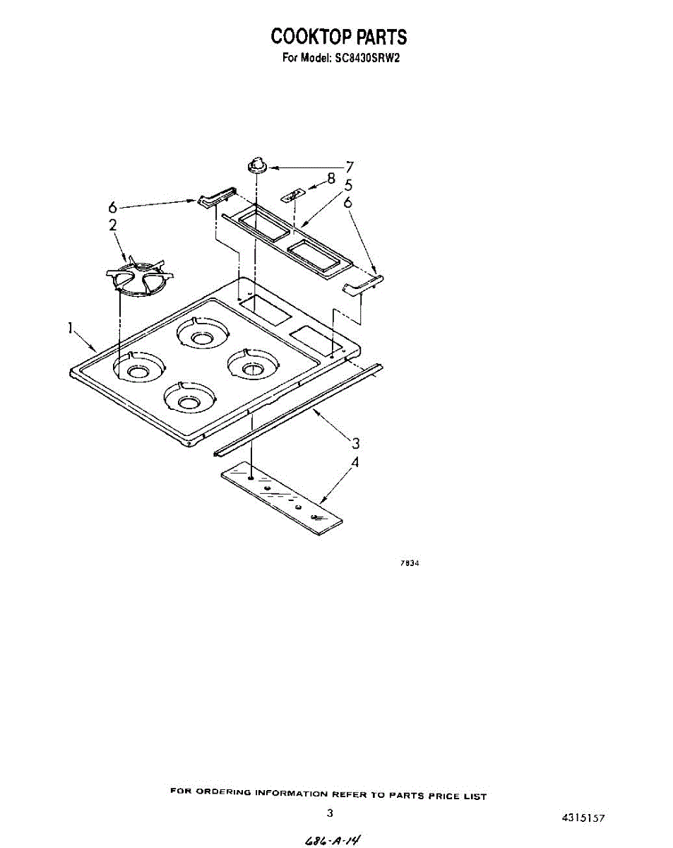 Parts for Whirlpool SC8430SRW2: 03 - Cooktop Parts