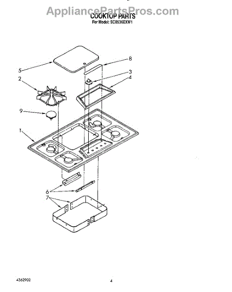 Parts for Whirlpool SC8536EXW1: 03 - Cooktop Parts