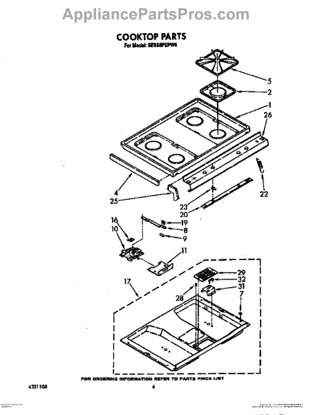 Parts for Whirlpool SE960PEPW6: 04 - Cooktop Parts