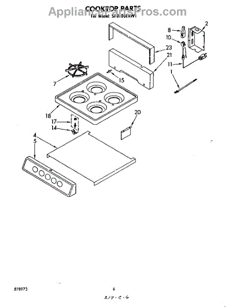 Parts for Whirlpool SF0100EKW1: 05 - Cooktop Parts