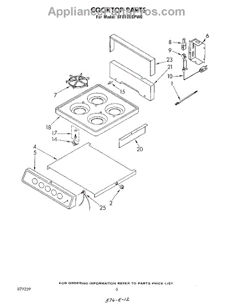 Parts for Whirlpool SF0105SPW0: 05 - Cooktop Parts