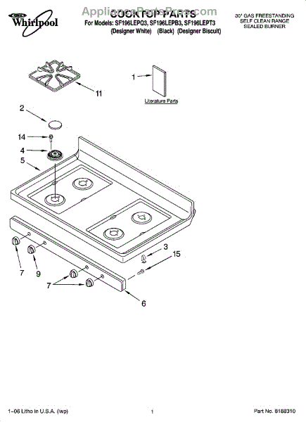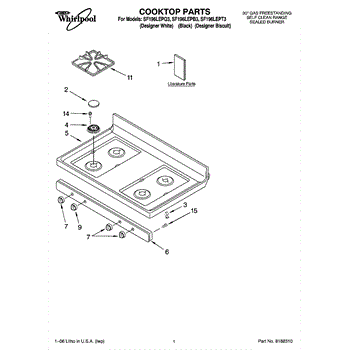 Parts for Whirlpool SF196LEPQ3: 01 - Cooktop Parts