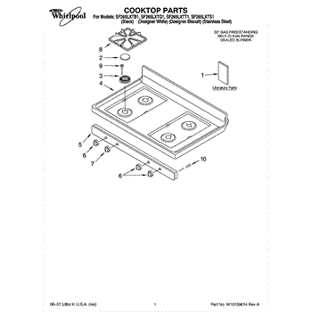 Parts for Whirlpool SF265LXTQ1: 01 - Cooktop Parts