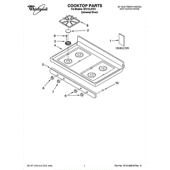 Parts for Whirlpool SF272LXTD1: 01 - Cooktop Parts