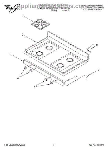 Parts for Whirlpool SF3020EGN0: 01 - Cooktop Parts