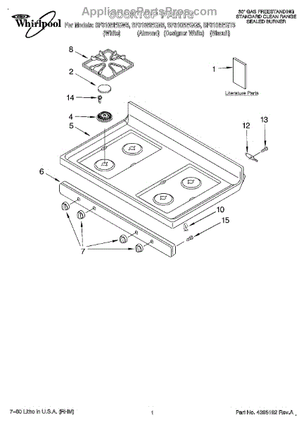 Parts for Whirlpool SF310BEGW5: 01 - Cooktop, Literature Parts